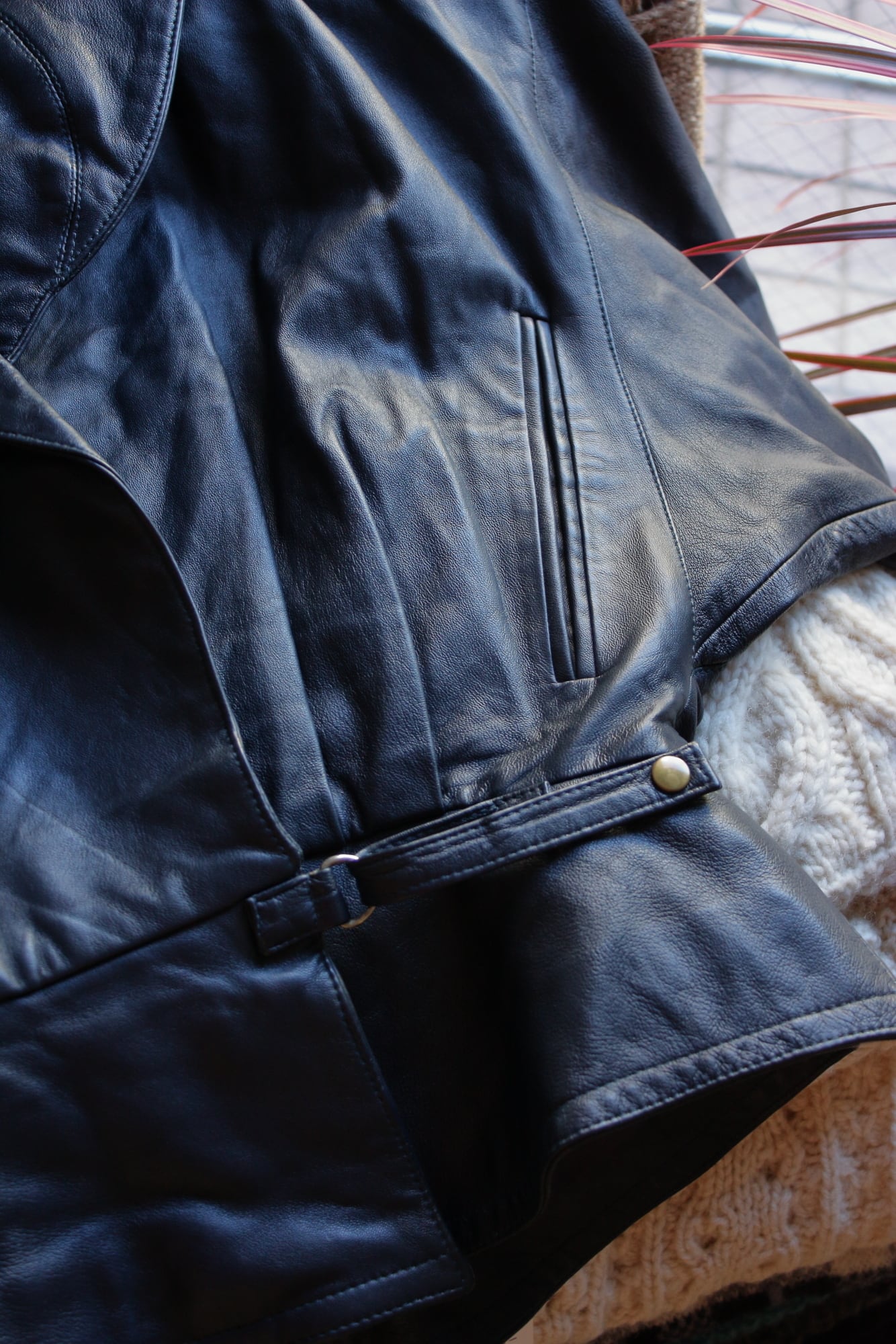 濃紺の、恐らくシープスキン。