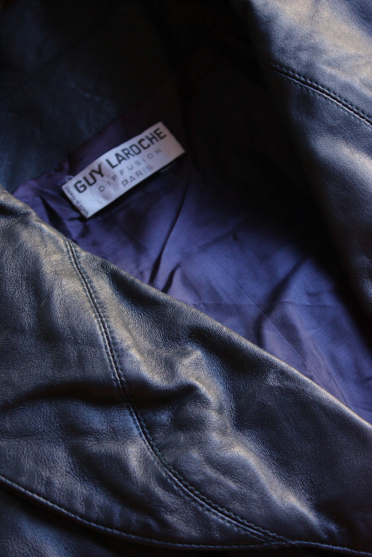 80s Guy Laroche Navy Leather Jacket