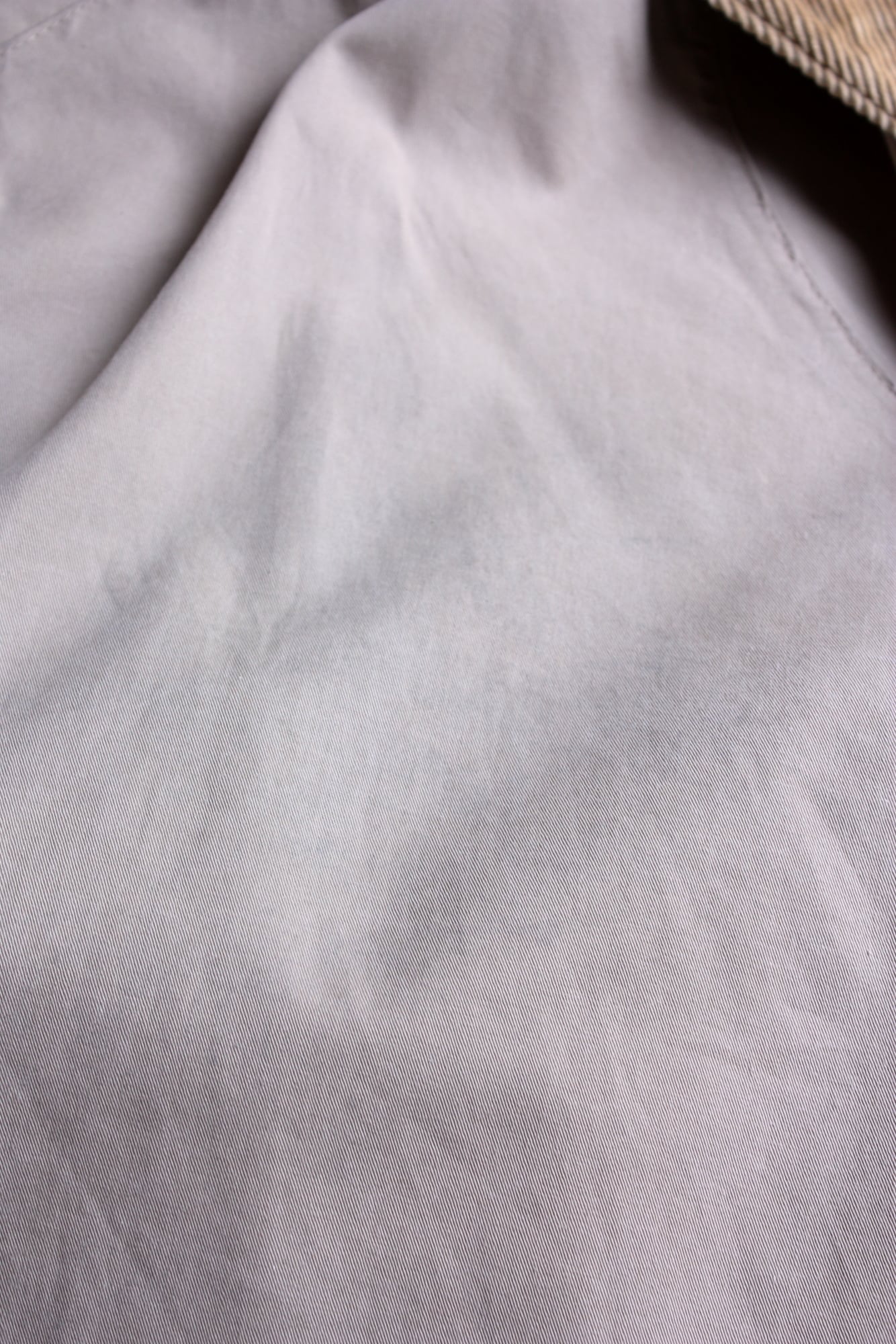 オイルドコットンではなく、コットン生地の裏側にポリウレタンコーティングを施してある物で、匂いやベタつきのないクリーンな素材。