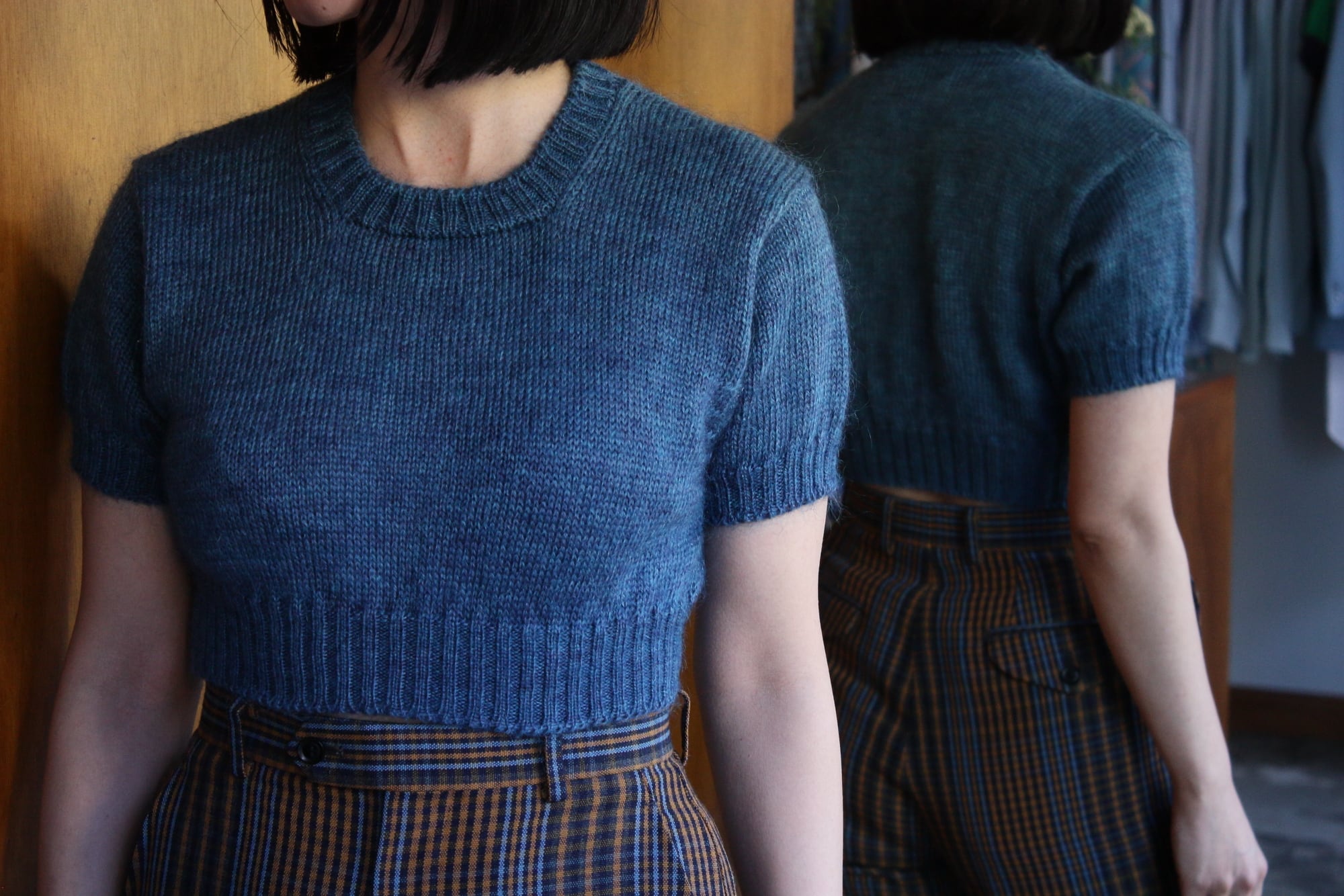 John Tulloch Mohair Cropped Short Sleeve Sweater Made in Scotland Deadstock "Navy"